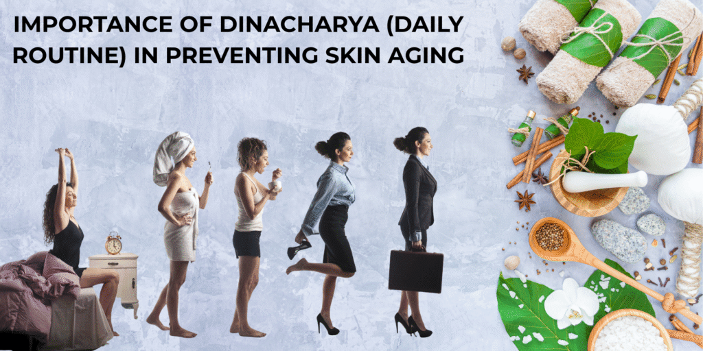 Aging is a natural process, but premature wrinkles, dullness, and pigmentation often make the skin look older than it truly is. In Ayurveda, the key to youthful, glowing skin lies not only in herbal remedies but also in Dinacharya—a well-balanced daily routine that aligns with nature’s rhythm. By following Dinacharya, one can maintain healthy skin, delay visible signs of aging, and preserve natural beauty.